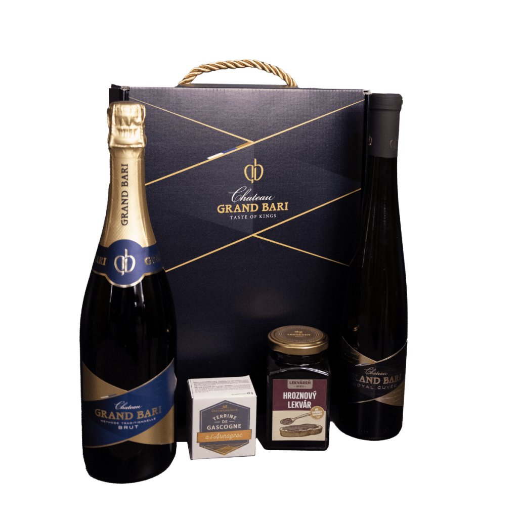 O výrobku: | Darčekový set Royal poteší milovníkov vynímočných sektov v sladkom spojení s oxidatívnym vínom. Plné bublinky v kvalitnom sekte sme párovali s vysoko kvalitnou talianskou paštétou, ktorú si viete krásne dochutiť so slovenským hroznovým lekvárom. A samozrejme sme nezabudli na sladkú bodku, Royal Cuvée, ktoré uzatvára tento komplexný pôžitok. |