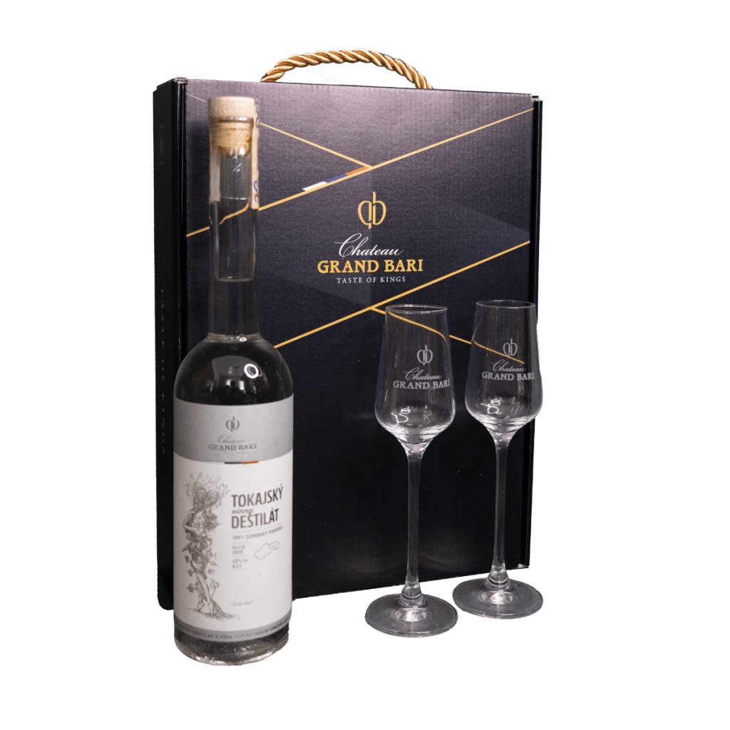 Tokajský destilát s pohármi